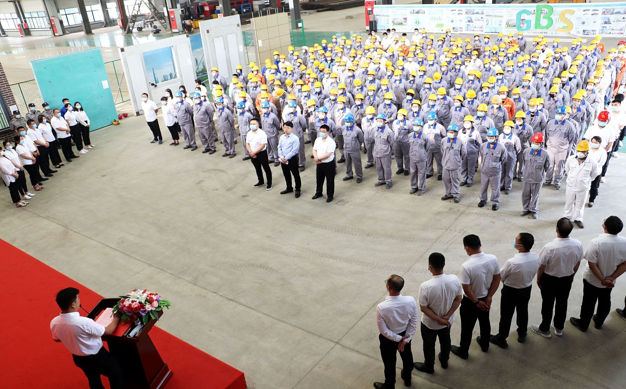 2021年8月8日上午8時(shí),吹響沖鋒號(hào),在精工綠筑工廠展廳隆重舉行了“大干一百天”動(dòng)員誓師大會(huì)儀式,公司總經(jīng)理王曉春、副總經(jīng)理屠國(guó)平等領(lǐng)導(dǎo)及全體管理干部、生產(chǎn)全體職工350余人共同出席大會(huì)。會(huì)議現(xiàn)場(chǎng)氣氛莊重?zé)崃?,與會(huì)人員斗志昂揚(yáng),充分展現(xiàn)了精工人的“